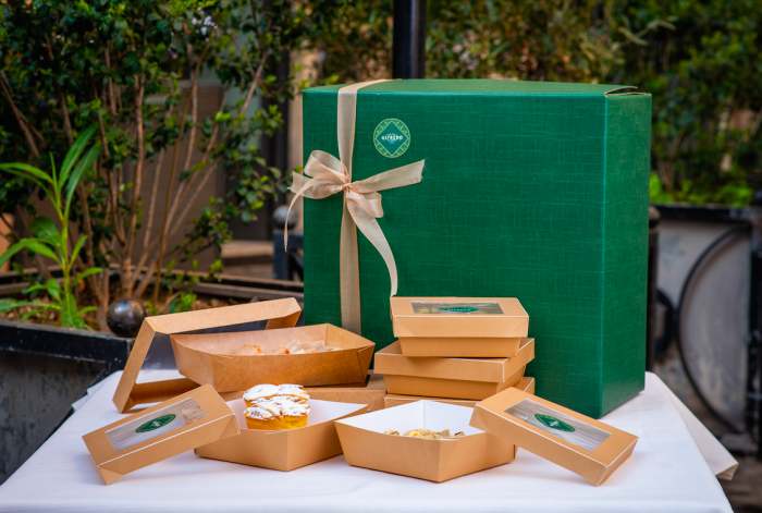 Il ristorante Alfredo alla Scrofa insieme allo chef Mirko Moglioni ha creato una special box composta da piatti tipici pasquali da consumare direttamente a casa. Si inizia con un Antipasto pasquale composto da un misto di salumi, pizza cresciuta e torta al formaggio. Si prosegue con i Cannelloni con la pancetta, asparagi, fonduta di pecorino e tartufo e il tipico Agnello brodettato con le fave e si conclude in dolcezza con la Pastiera con crema al limone.