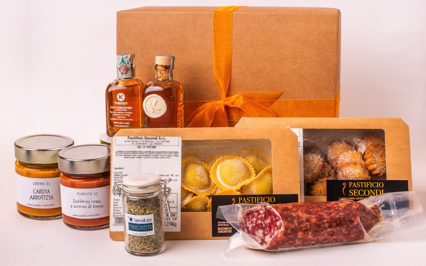 Le box racchiudono le prelibatezze del Pastificio Secondi, ampia e variegata è l’offerta di pasta fresca del Pastificio Secondi. Nel moderno laboratorio romano si producono Sfoglie speciali e precotte, Trafilati, Pasta acqua e farina, Gnocchi, Tagliati e Ravioli a base di ricotta, Ripieni di carne, Piatti pronti da forno e l’ Assoluto, una linea di ravioli che ha come ripieno un solo ingrediente e che ha ottenuto il bollino dell’Associazione Italiana Nutrizionisti per l’elevato potere nutraceutico. Arricchiscono la proposta del Pastificio le bontà del Dispensa Secondi: biscotti, salse e sughi realizzati con prodotti freschi e pronti per l’uso.