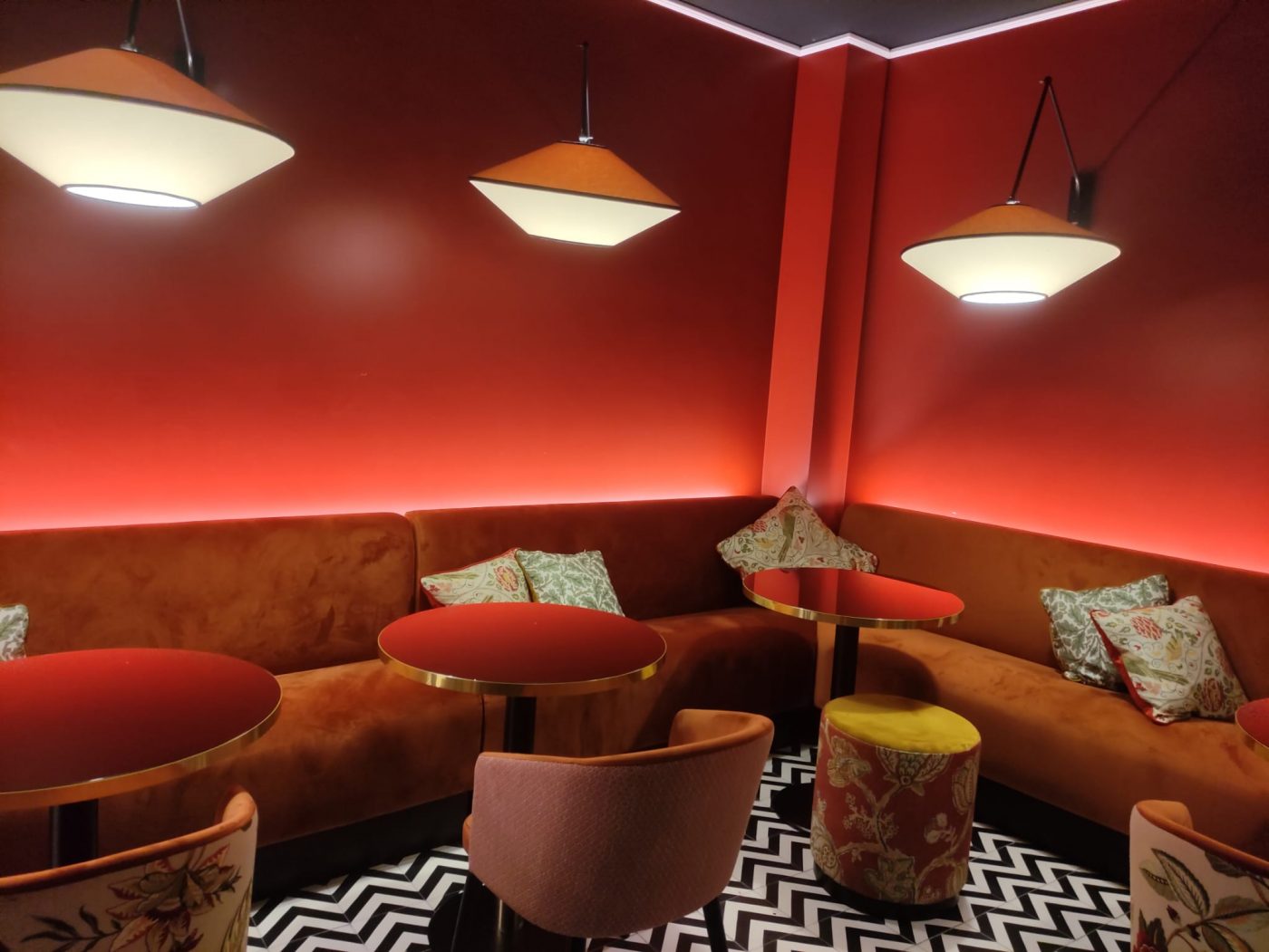 Un grande bancone e 50 posti a sedere con divanetti ricreano l’atmosfera perfetta per trascorrere piacevoli momenti all’insegna del gusto e della mixology.