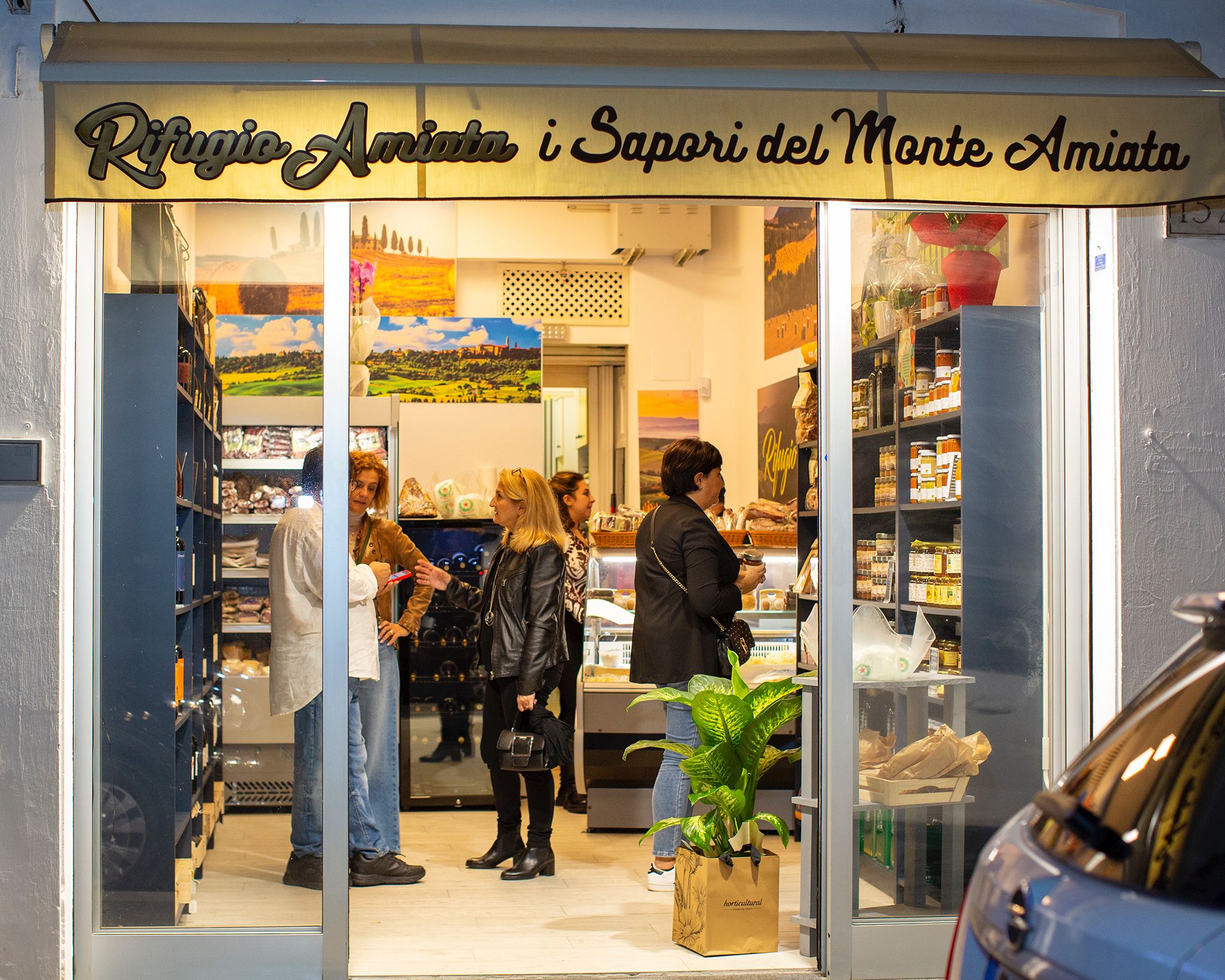 Sulla nuova apertura, molti hanno fatto caso al fatto che la via scelta rimanda proprio alla provenienza dei prodotti venduti. Infatti, tutti gli alimenti presenti nel negozio provengono dal Monte Amiata e sono selezionati da allevatori e agricoltori del posto. Pertanto, prima di aprire entrambi i punti vendita è avvenuta una lunga ricerca accurata. I clienti, inoltre, potranno gustare sul posto un piacevole aperitivo.