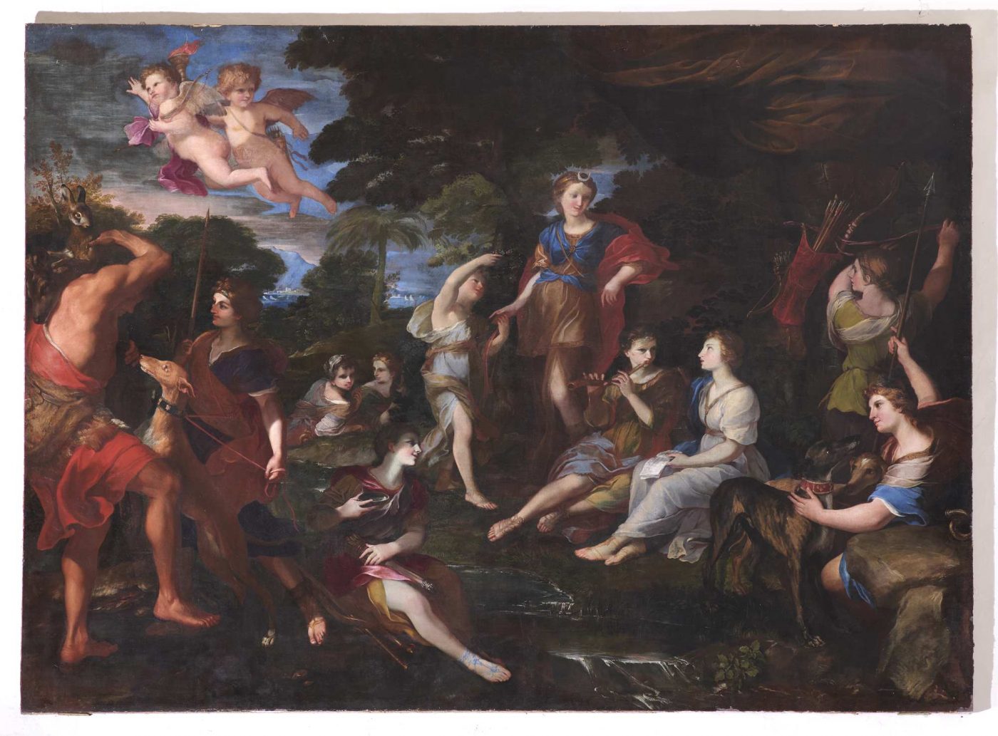 “La caccia di Diana” (olio su tela, cm. 293×403) è una delle due grandi tele commissionate tra il 1630 e il 1638 da Taddeo Barberini, nipote di papa Urbano VIII, ad Andrea Camassei, uno dei maggiori e più assidui interpreti delle strategie mecenatistiche della famiglia, sarà esposta nella grande mostra dedicata al quarto centenario del pontificato di Urbano VIII in programma a Palazzo Barberini nel 2023.