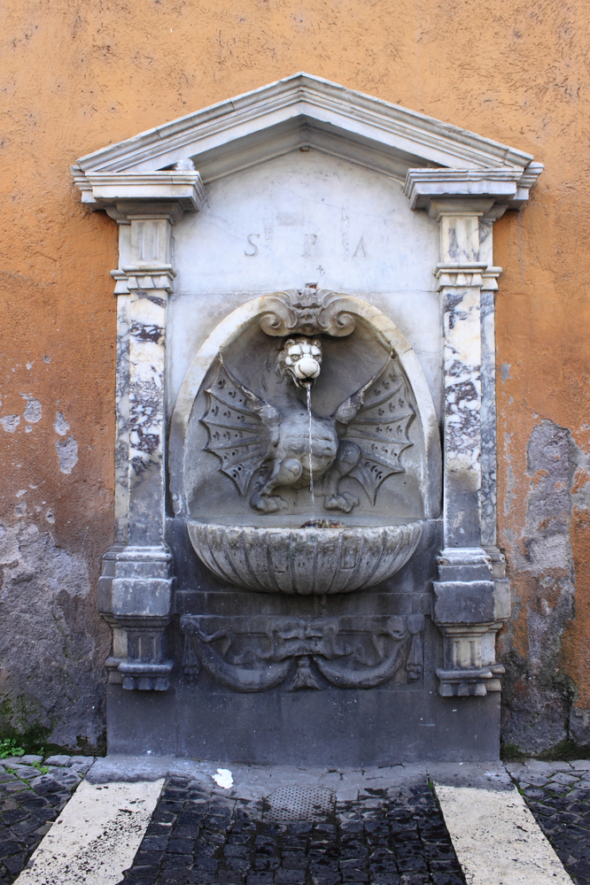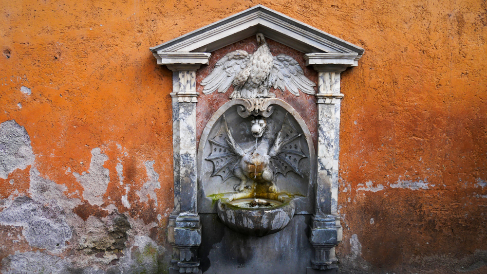 A Roma, via della Conciliazione, due fontane gemelle si contraddistinguono per due piccoli draghi ma una si differenzia per un dettaglio