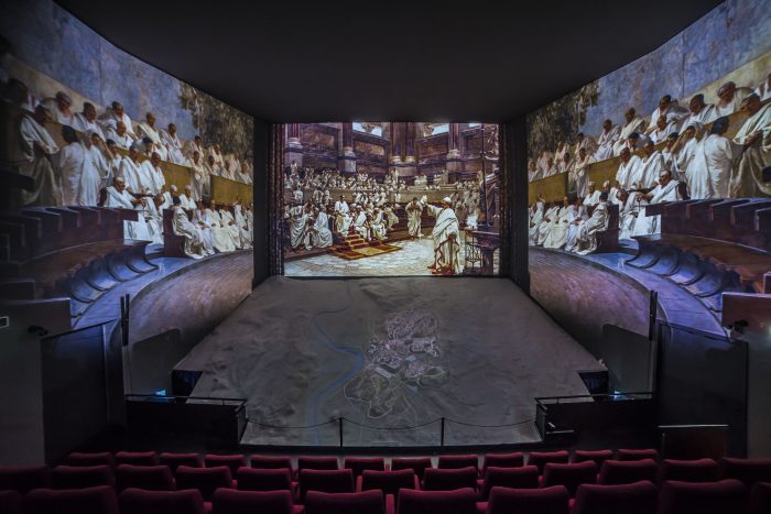 Si tratta di un vero e proprio ‘viaggio nel tempo‘. Un cinema immersivo attraverso il quale scoprire le evoluzioni urbanistiche, architettoniche e artistiche della città, tuffandosi in ogni epoca storica che ha segnato l’evoluzione capitolina.