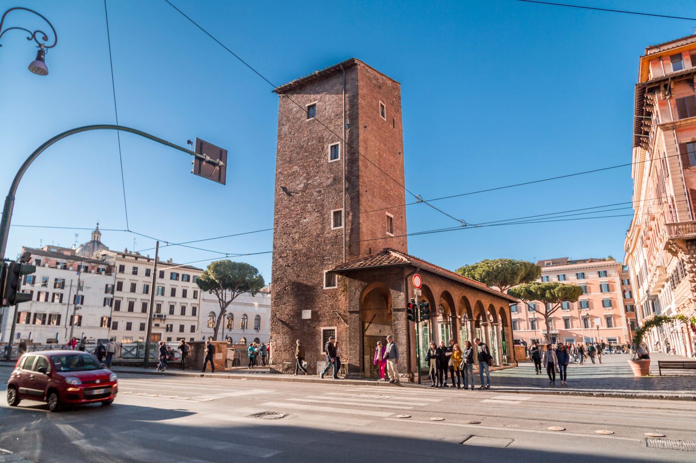 La Torre del Papitto viene confusa spesso dai visitatori con la Torre Argentina, ma le due si trovano a pochi metri di distanza.