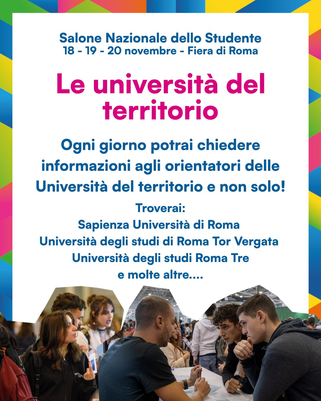 Oltre 60mila studenti provenienti da tutte le regioni italiane, pronti a confrontarsi con più di 120 realtà formative tra università, ITS Academy, enti di formazione professionale e istituzioni. In programma oltre 100 incontri, convegni, workshop e attività interattive, pensati per offrire ai ragazzi una panoramica completa sulle opportunità di studio e di lavoro.