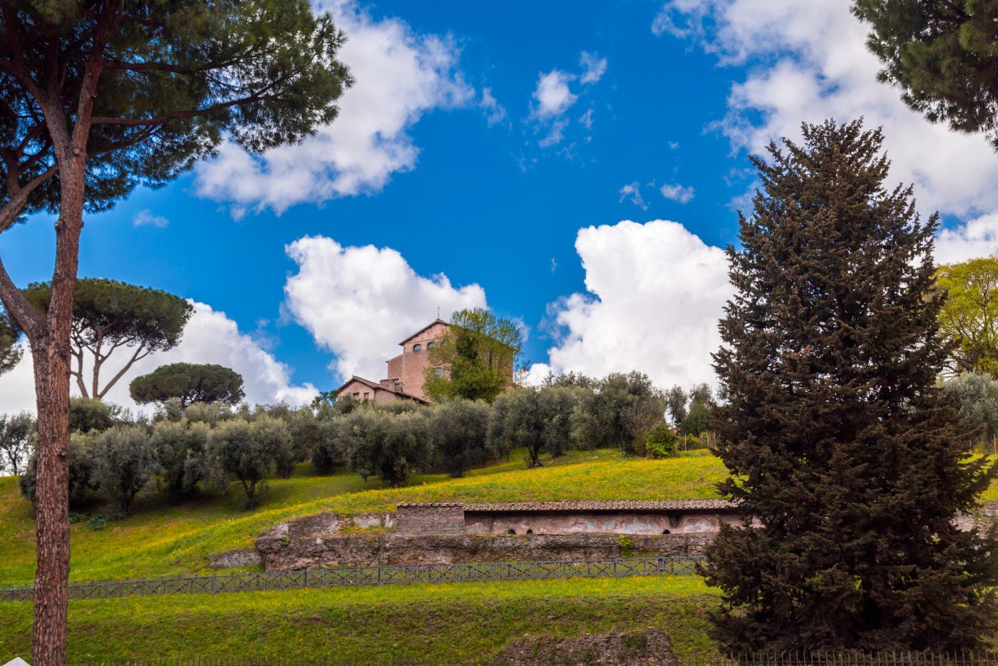 Da qui la Roma antica si apre come un teatro: le arcate del Colosseo, l’Altare della Patria, i Fori Imperiali si mostrano senza rumore, avvolti nel verde del Palatino. Lo stesso convento poggia su una cisterna dell’Acquedotto Claudio, testimonianza di infrastrutture romane che ancora sopravvivono sotto le fondamenta barocche.
