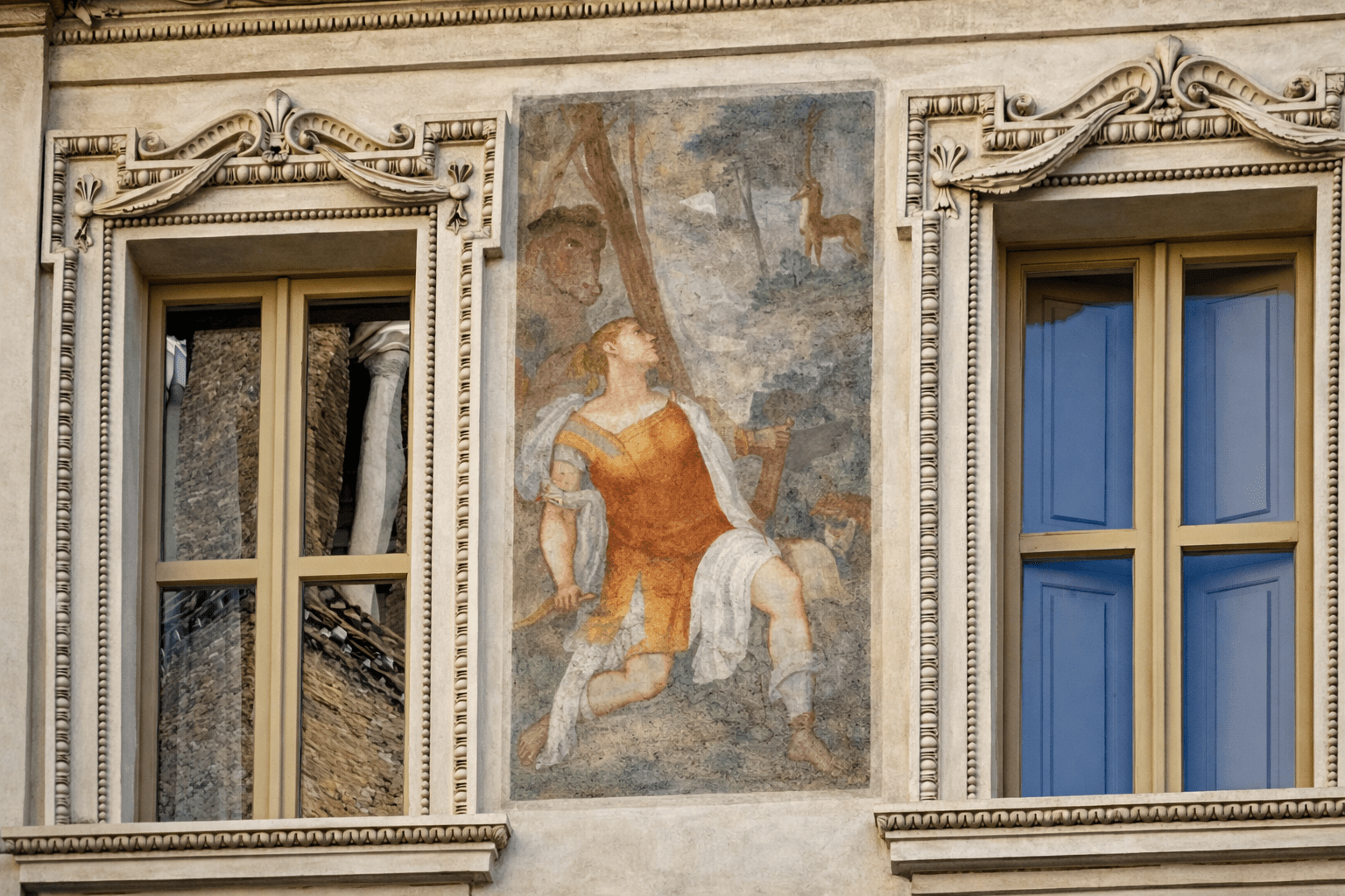Nel tempo, molte facciate dipinte in tutta Roma sono andate perdute a causa degli agenti atmosferici e delle trasformazioni urbane, rendendo questo edificio un caso particolarmente prezioso e raro. Gli affreschi che decorano la facciata si sviluppano attorno alle finestre del piano nobile e presentano un raffinato repertorio figurativo: figure simboliche, elementi vegetali, mascheroni e motivi fantastici dialogano con l’architettura, integrandosi con cornici e paraste.
