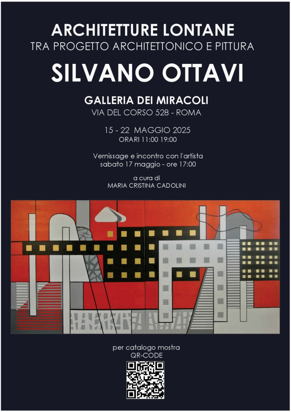 Si terrà a ROMA, alla Galleria dei Miracoli a via del Corso civico 528, dal 15-22 MAggio 2025 la mostra ARCHITETTURE LONTANE – TRA PROGETTO ARCHITETTONICO E PITTURA di Silvano Ottavi a cura di Maria Cristina Cadolini e con la preziosa collaborazione di Simonetta de Cubellis