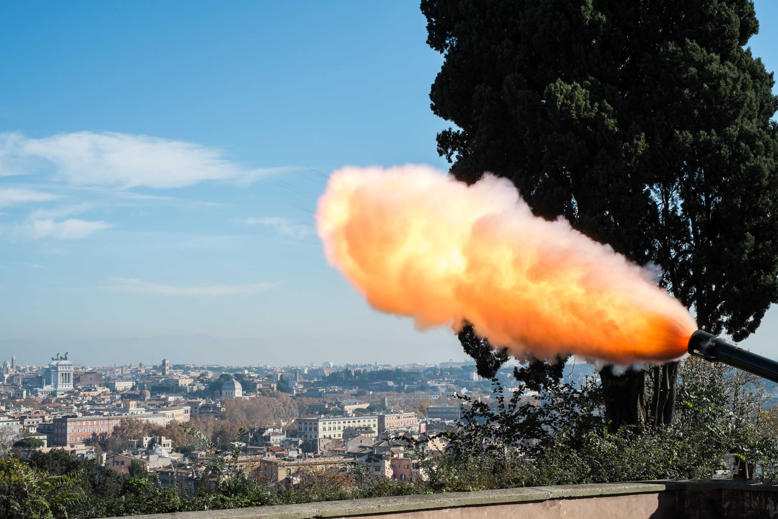 Il tradizionale sparo di mezzogiorno affonda le sue radici nel 1847, quando Papa Pio IX introdusse il colpo di cannone per sincronizzare le campane delle chiese romane. Nel tempo, la tradizione si è spostata da Castel Sant’Angelo e Monte Mario fino al Gianicolo, dove dal 1904 continua a scandire la vita della città. Interrotto durante la Seconda guerra mondiale, il rito è stato ripristinato nel 1959 e da allora rappresenta uno dei simboli più riconoscibili di Roma, capace di unire passato e presente in un solo, preciso istante.