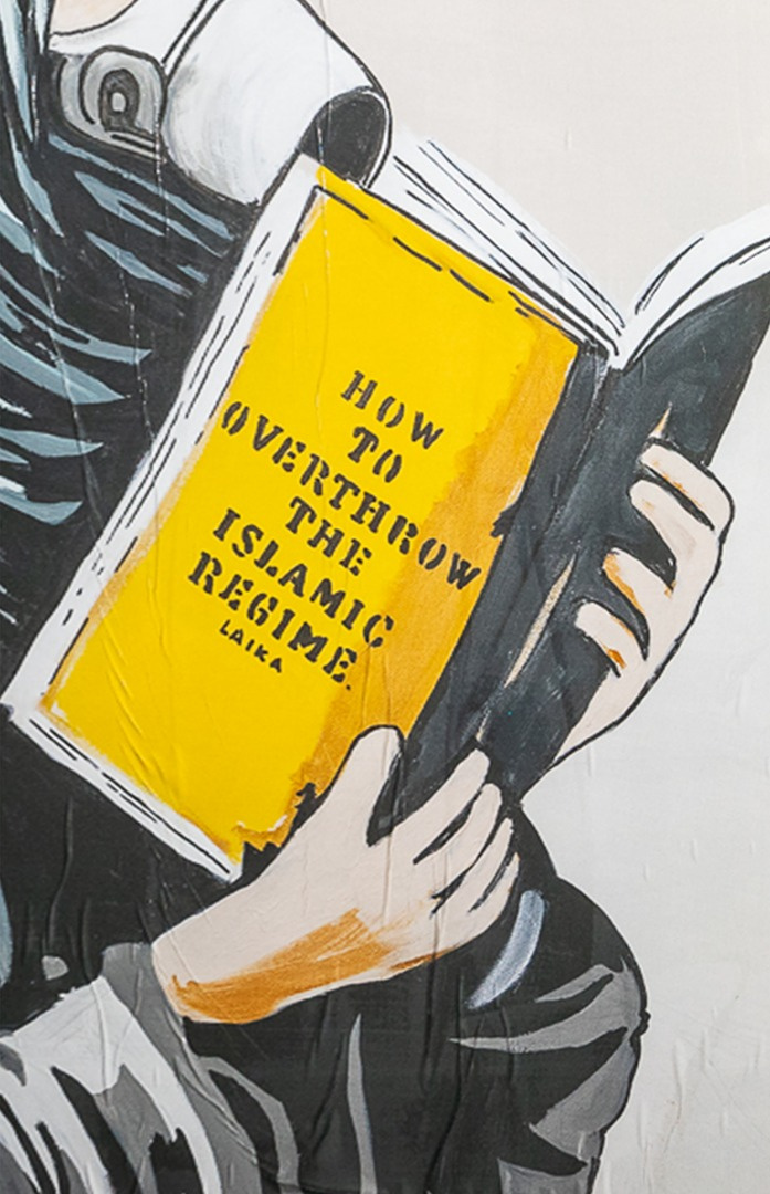 “Lascio alla strada un’altra opera a sostegno delle donne iraniane, afferma Laika, è necessario sostenere questa rivoluzione e bisogna continuare ininterrottamente a far luce sulle violazioni dei diritti umani del regime islamico ai danni della popolazione.