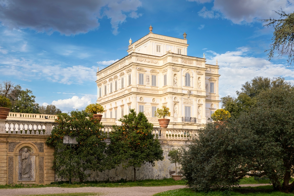 Pensato come dimora nobiliare di campagna dei principi Pamphilj, l’edificio si distingue ancora oggi per le sue eleganti facciate ricche di rilievi, fregi e statue. I giardini, realizzati nel Seicento, conservano tuttora l’impianto originario, con interventi successivi nel Settecento quando furono ridisegnati su impulso dei francesi.