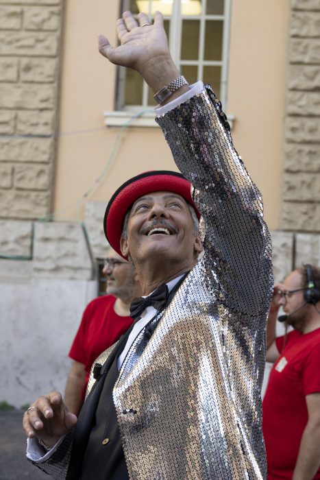 “E’ stato arrestato per disturbo della quiete pubblica! Lo hanno denunciato mentre si esibiva sul tetto di Rai Radio“. Ha ironizzato il mattatore.
