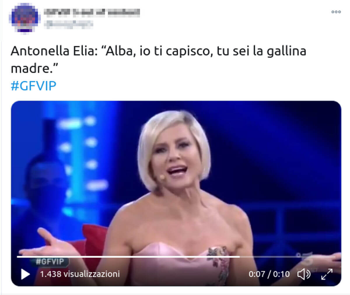 Alfonso Signorini ha letto il post in diretta, scatenando subito la reazione di Antonella, che si è così rivolta alla Parietti: “Alba, io ti capisco, tu sei la gallina madre e hai le penne arruffate!”