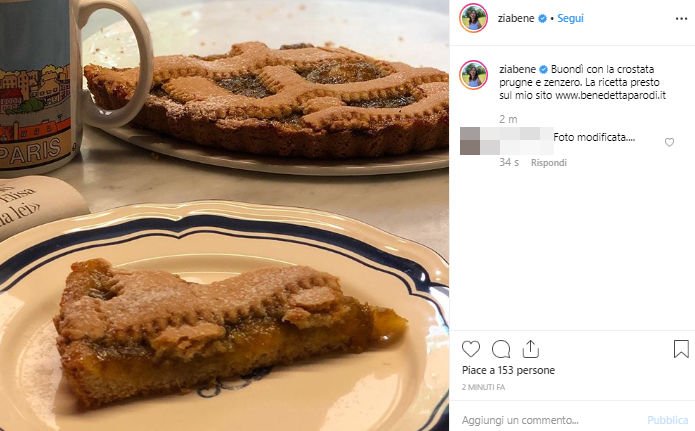 Benedetta Parodi viene ripresa dai suoi fan per la foto postata su Instagram. Oltre alla crostata,