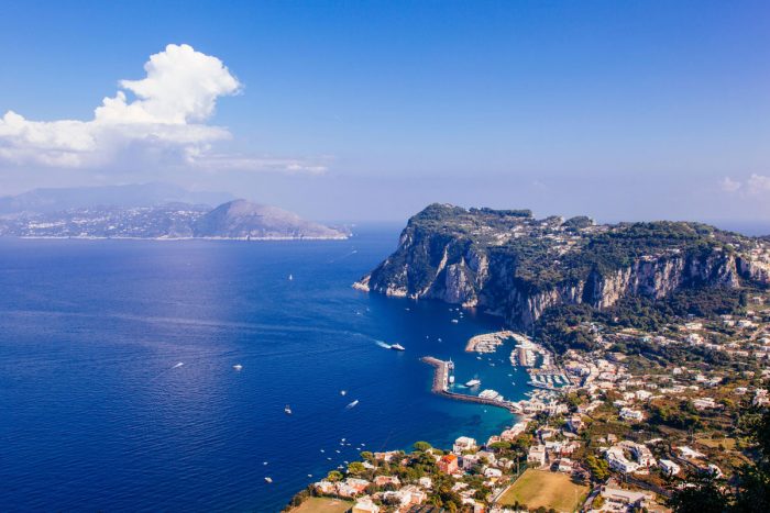 Per il collegamento con lo chef campano è stata scelta una location straordinaria: l’isola di Capri con una suggestiva panoramica sul golfo di Napoli.
