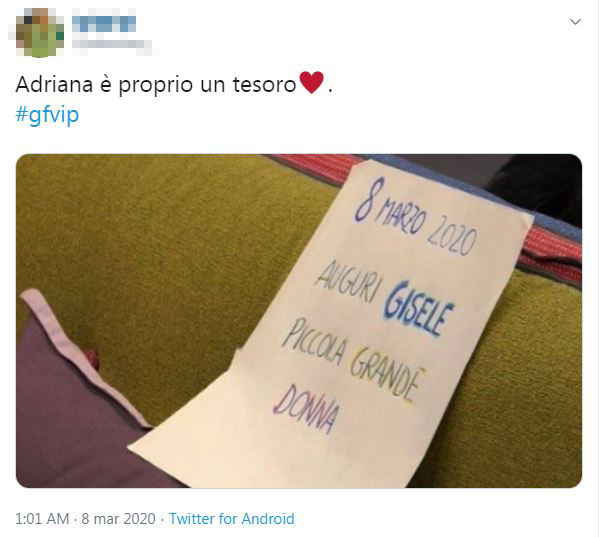Il messaggio di Adriana per Gisele #gfvip pic.twitter.com/PK39YakMWF