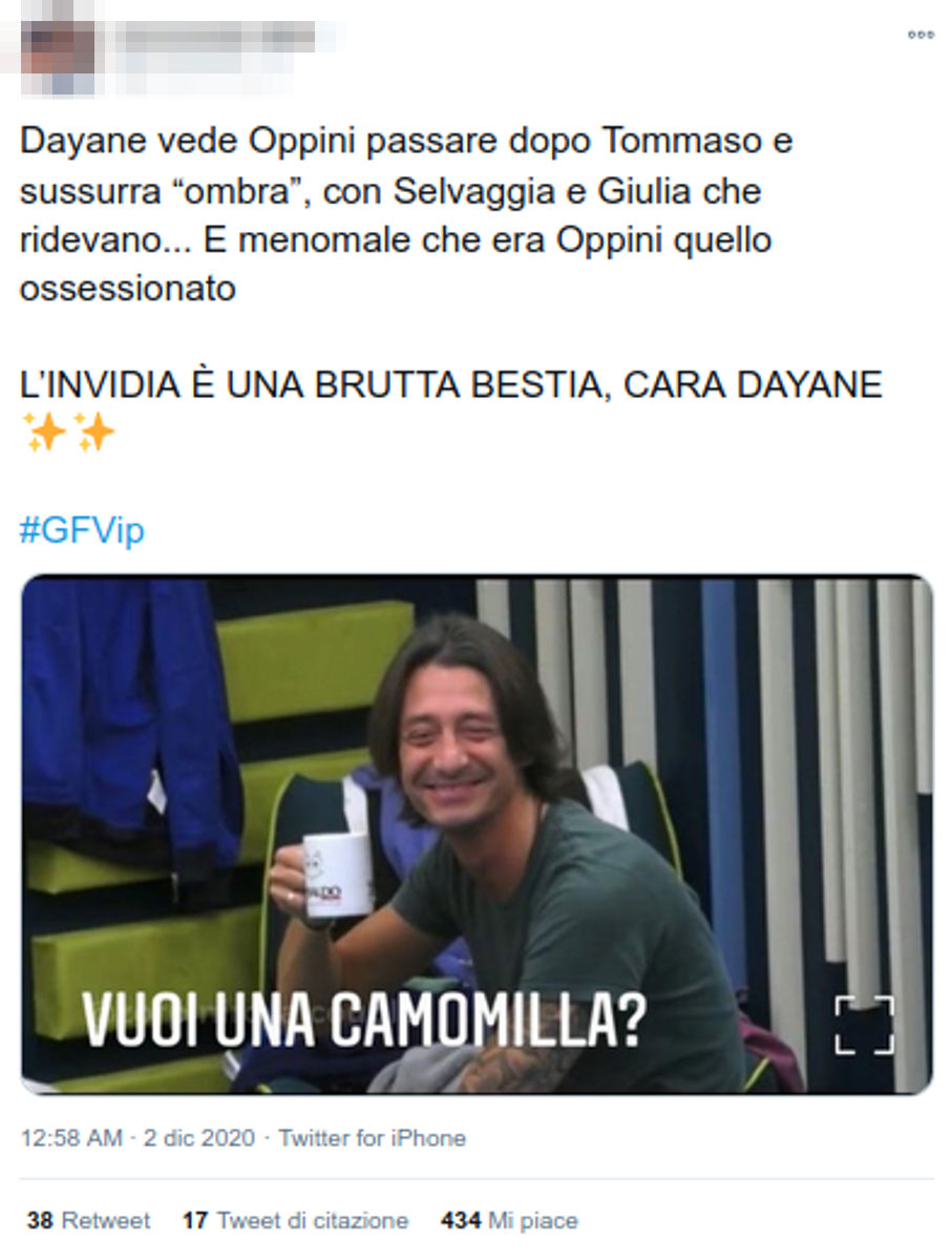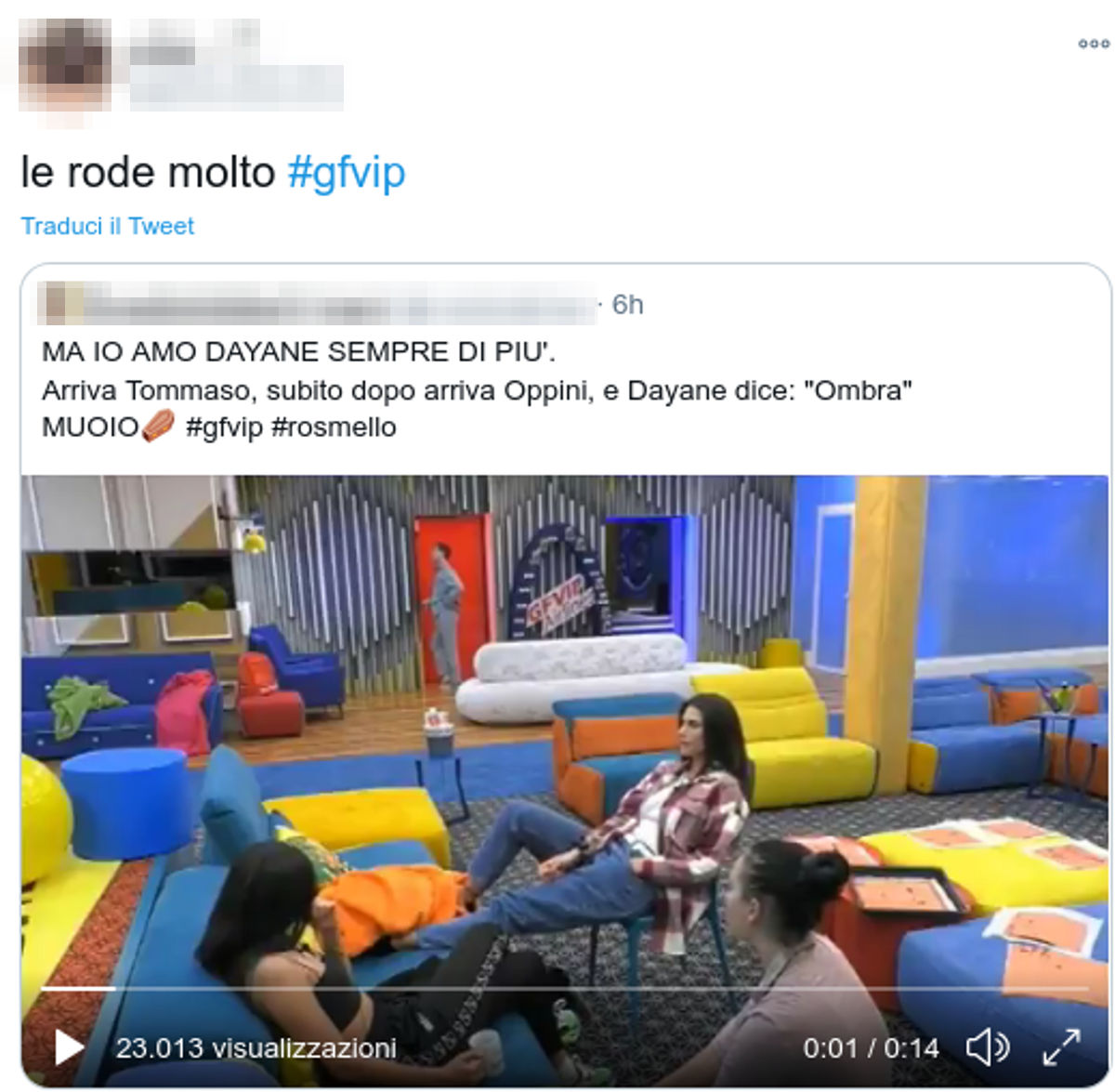 Il web ha subito notato la situazione, cominciando a scriverne di tutti i colori. “E menomale che era Oppini quello ossessionato – ha commentato una persona – L’invidia è una brutta bestia, cara Dayane”. E ancora: “Le rode molto”.