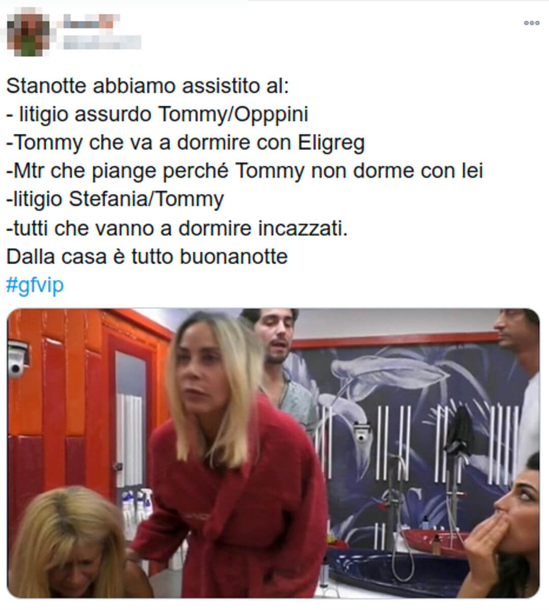 In questa sorte di “lite” tra Francesco Oppini e Tommaso Zorzi sono intervenute anche Maria Teresa Ruta e Stefania Orlando. La prima è scoppiata in lacrime perché Tommaso ha risposto male anche a lei, andando a dormire nell’altra stanza. La seconda, invece, ha cercato di rimettere Tommy in riga.