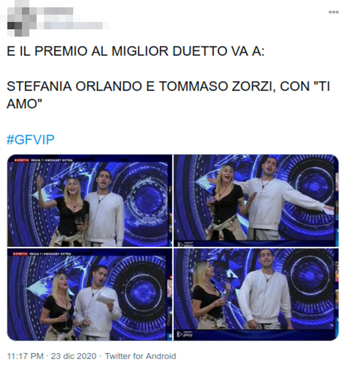 Stefania Orlando e Tommaso Zorzi cantano “ti amo”#GFVIP pic.twitter.com/BL7JSTQ9IH