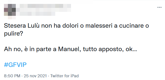 Sul web in tanti hanno notato che questo chiacchiericcio dei due nei confronti di Lulù non è stato frutto di cattiveria, ma piuttosto di una certa esasperazione sofferta da Manuel e di Aldo per via dei comportamenti della Selassié.