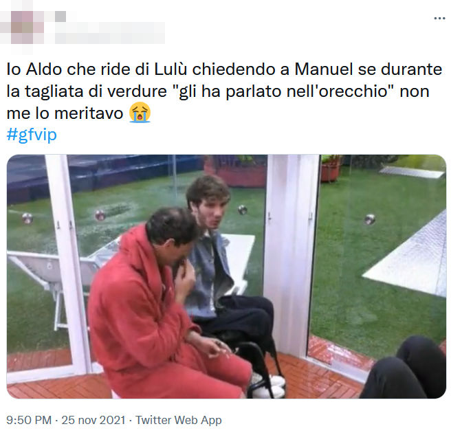 Sul web in tanti hanno notato che questo chiacchiericcio dei due nei confronti di Lulù non è stato frutto di cattiveria, ma piuttosto di una certa esasperazione sofferta da Manuel e di Aldo per via dei comportamenti della Selassié.