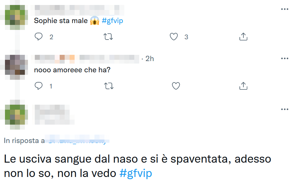 Andiamo con ordine. Al GF Vip, Sophie Codegoni si è sentita poco bene, accusando un piccolo malore. Sembra che non sia stato nulla di grave, soltanto un abbassamento di pressione che l’ha fatta apparire molto pallida, sebbene ad un certo punto le è addirittura uscito del sangue dal naso.