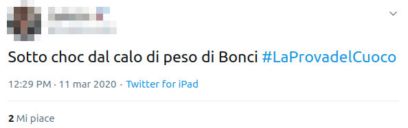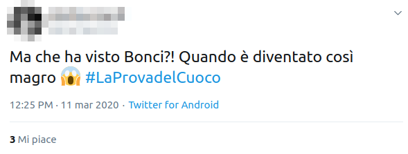 “Ma che ha visto Bonci?! Quando è diventato così magro?” ha scritto su Twitter una telespettatrice preoccupata. E ancora c’è chi si dichiara “Sotto choc dal calo di peso di Bonci”.