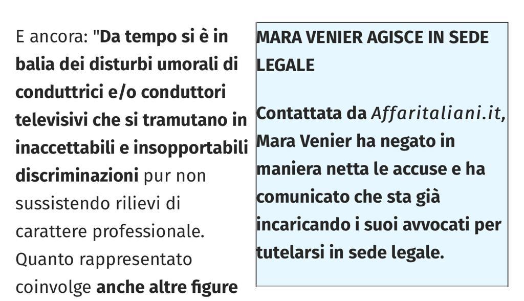 Tutte notizie che, se confermate, potrebbero mettere seriamente in discussione la stessa Mara Venier, minandone terribilmente la carriera