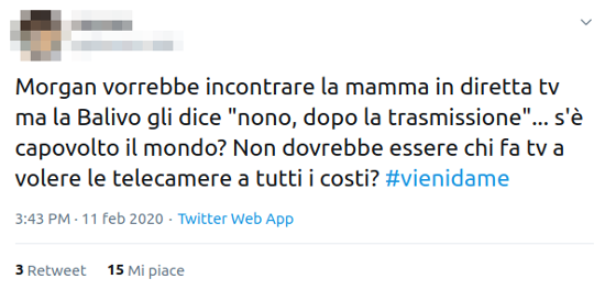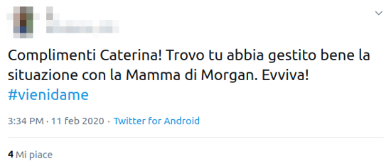 Una questione che diversi si pongono sul web, a partire da chi si domanda “Morgan vorrebbe incontrare la mamma in diretta tv ma la Balivo gli dice ‘nono, dopo la trasmissione’… s’è capovolto il mondo? Non dovrebbe essere chi fa tv a volere le telecamere a tutti i costi?”. Ma, sulla questione, c’è anche chi fa i complimenti alla conduttrice campana: “Complimenti Caterina! Trovo tu abbia gestito bene la situazione con la Mamma di Morgan. Evviva!”