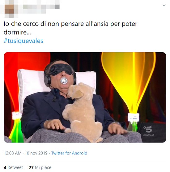 A Tú sí que vales Gerry Scotti sperimenta le tecniche ASMR con il ciuccio in bocca, la mascherina e un peluche sulle ginocchia, ma diventa immediatamente un meme!