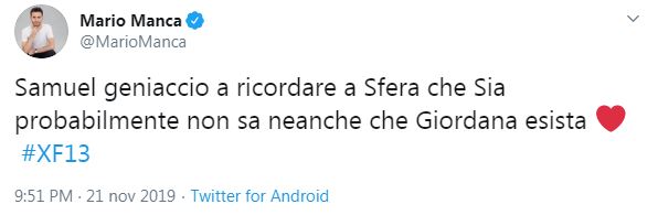 “Non credo che Sia abbia chiamato per dire ‘voglio dare un pezzo a Giordana’” ha più meno lasciato intendere con sarcasmo. Le parole di Samuel non sono passate inosservate sui social, dove in tanti hanno apprezzato il suo intervento.