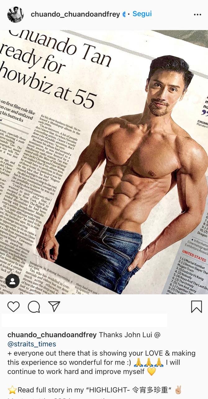 Fisico scolpito, tartaruga in bella vista nella maggior parte dei selfie che propina ai quasi 300mila followers di Instagram e pose scelte con attenzione per mettere in risalto il suo innegabile sex appeal, Chuando Tan si diverte a mistificare la sua età e quando si rade il pizzetto può essere tranquillamente scambiato per uno che è appena uscito dal college. Vedete rughe o segni del tempo sul suo volto?