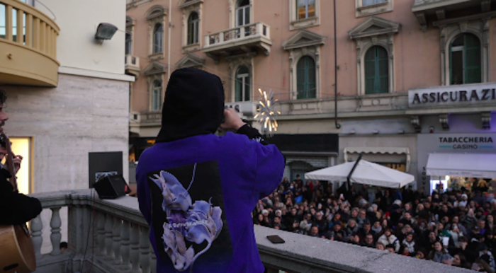 Tananai, sorpresa a Sanremo: canta ‘Tango’ in strada regalando rose