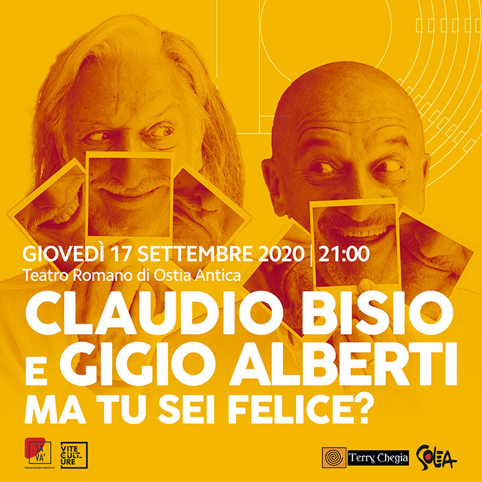 17 Settembre: Ma tu sei felice? lettura-spettacolo dal libro di Federico Baccomo. con Claudio Bisio e Gigio Alberti. Due uomini seduti al bar. Parlano, parlano… Intorno a loro nessuno. Situazione strana. Ma i due non ci badano. Parlano. Di tutto. Mogli, figli, parenti, giovani e vecchi, avventure, tradimenti, scuola, medicina, amici, lavoro, criminalità. I due, Vincenzo e Saverio, sono benestanti, hanno tutto quello che si potrebbe volere, forse anche di più. Ma niente va, secondo loro, come dovrebbe andare. Con Funweek solo 15 Euro + ddp. codice promozione “funweekroma“