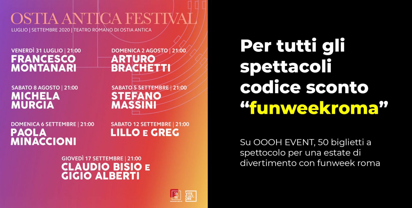 Sono aperte le le prevendite per i primi 7 spettacoli annunciati in cartellone della quinta edizione di Ostia Antica Festival, la rassegna che si svolge al Teatro Romano di Ostia Antica e presenta ogni anno grandi spettacoli di musica, teatro e danza fra tradizione e innovazione, organizzati dal consorzio di imprese “Antico Teatro Romano” in collaborazione con il Parco Archeologico di Ostia antica.